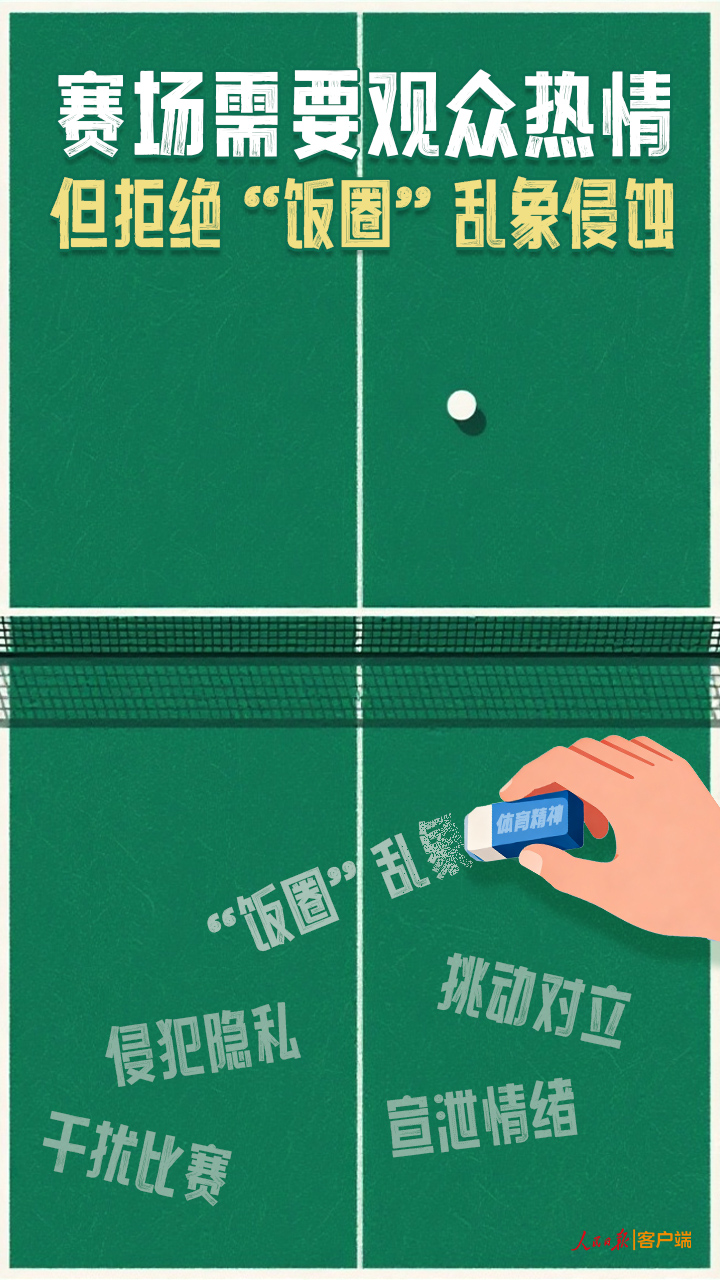 赛场上每次挥拍,传递的是体育精神,而不应是“饭圈”戾气。为运动员的精彩扣杀而喝彩,也应听懂他们的呼吁,理解其良苦用心,真正做到“听劝”。赛场需要观众热情,但拒绝“饭圈”乱象侵蚀。只有在理性与尊重的氛围中,体育精神才能熠熠生辉,运动员才能心无旁骛地践行“更快、更高、更强——更团结”。