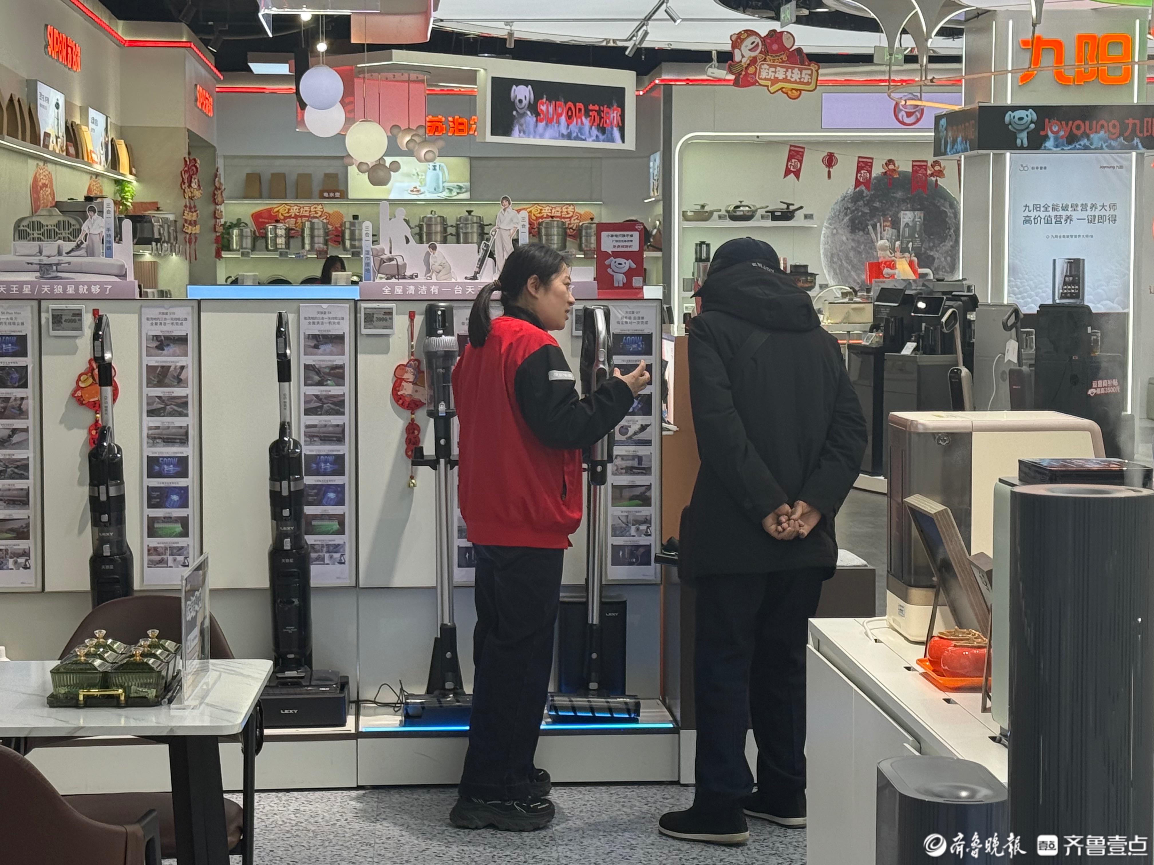 2月5日中午,济南泉城路京东电器城市旗舰店的清洁电器专区,即便不是周末,客流仍络绎不绝。各大智能清洁品牌的展台前,不时有市民驻足体验,销售人员忙着演示产品功能、讲解优惠政策。