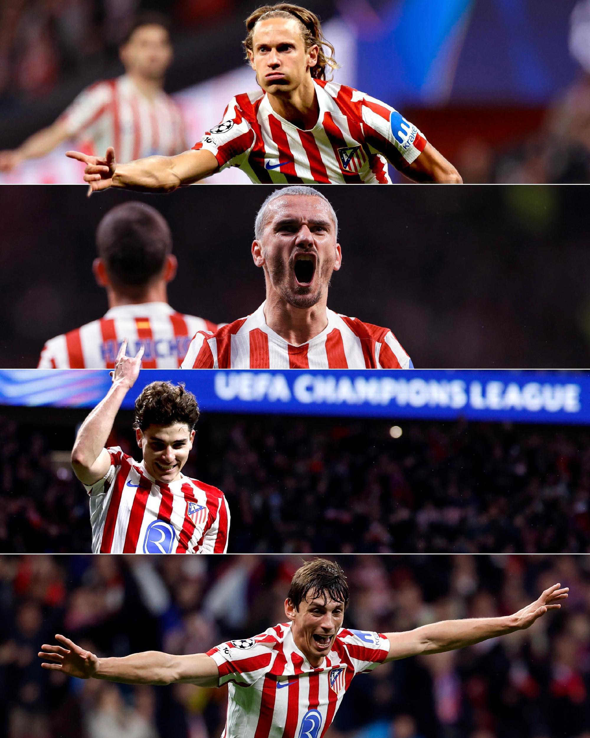此外,本场比赛也是马德里竞技在欧冠淘汰赛阶段首次单场打入至少5球。